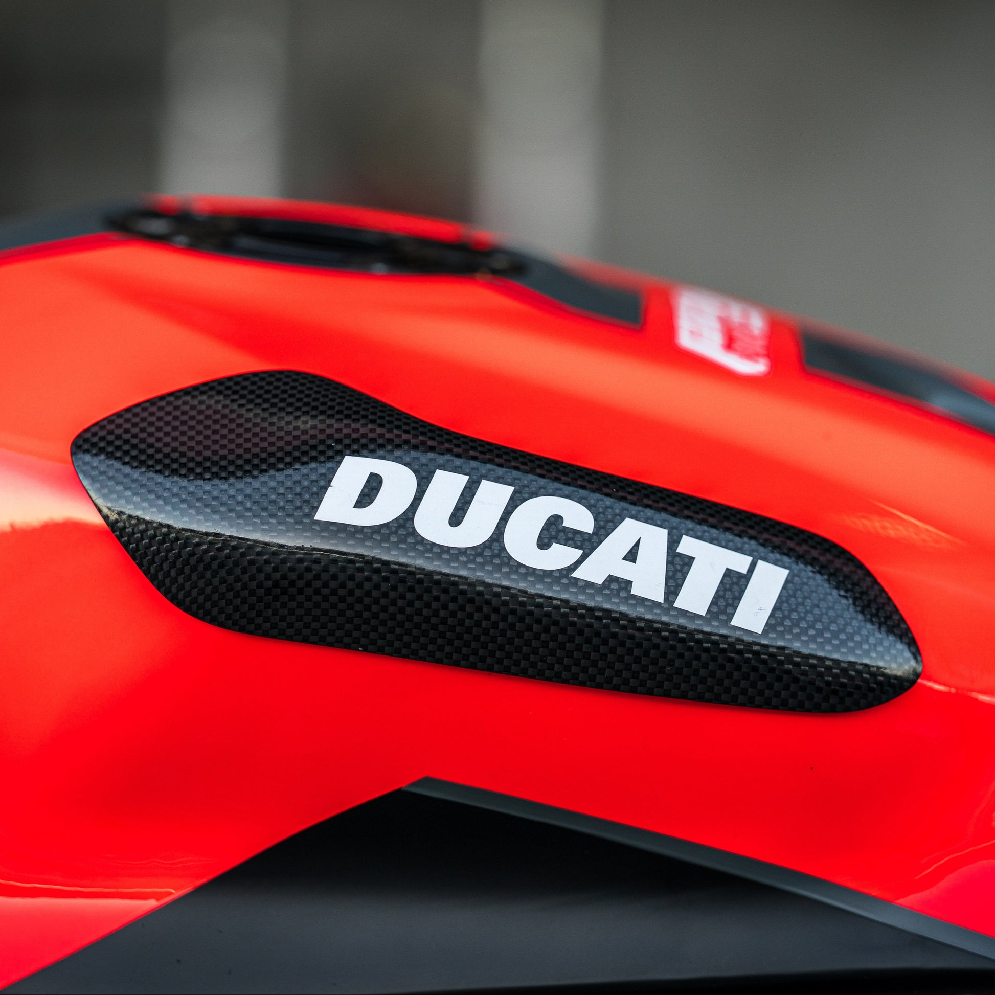 Protezioni laterali in carbonio per serbatoio Panigale V2 SSP, realizzate per proteggere il serbatoio in caso di caduta.